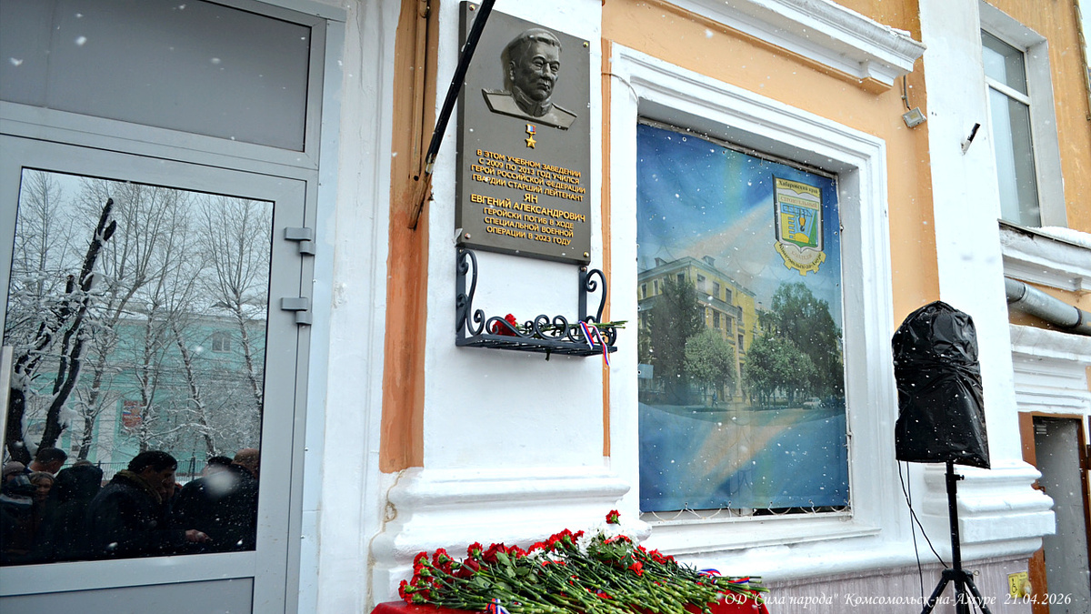 21 апреля 2026 г., в день рождения Героя России Евгения Яна, погибшего в ходе СВО в 2023 г., в его честь была торжественно открыта мемориальная доска на здании строительного колледжа г. Комсомольска-на-Амуре, в котором он учился. С 17 августа 2022 г. командир мотострелковой роты, гвардии старший лейтенант Евгений Александрович Ян защищал мирных жителей Донецкой и Луганской Народных Республик. С первых же дней он проявил мужество и высокую профессиональную подготовку. В ноябре 2022 г. он возглавил штурмовую группу при проведении наступательных действий в районе города Марьинка в ДНР. Результатом продолжительного боя стало освобождение двух жилых кварталов города, был взят под контроль опорный пункт противника. В декабре 2022 г., войдя в окружение врага, Евгений Ян вызвал огонь на себя. Тем самым он смог вывести личный состав в безопасное место, избежав потерь, и попутно уничтожив пулемётный расчёт и до 8 бойцов ВСУ. 21 января 2023 г., в ходе освобождения города Марьинка Евгений Александ