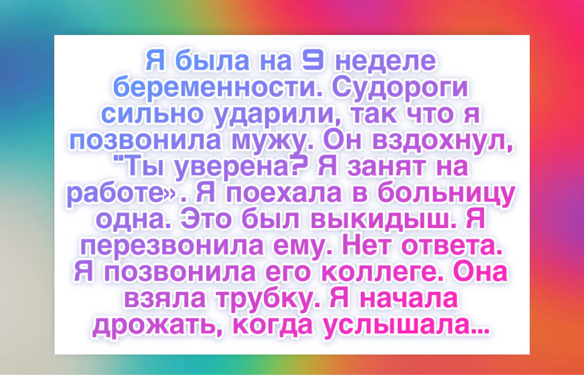 “Я была на девятой неделе беременности, когда начались боли. Позвонила мужу, он сказал разобраться самой, у него было много работы.