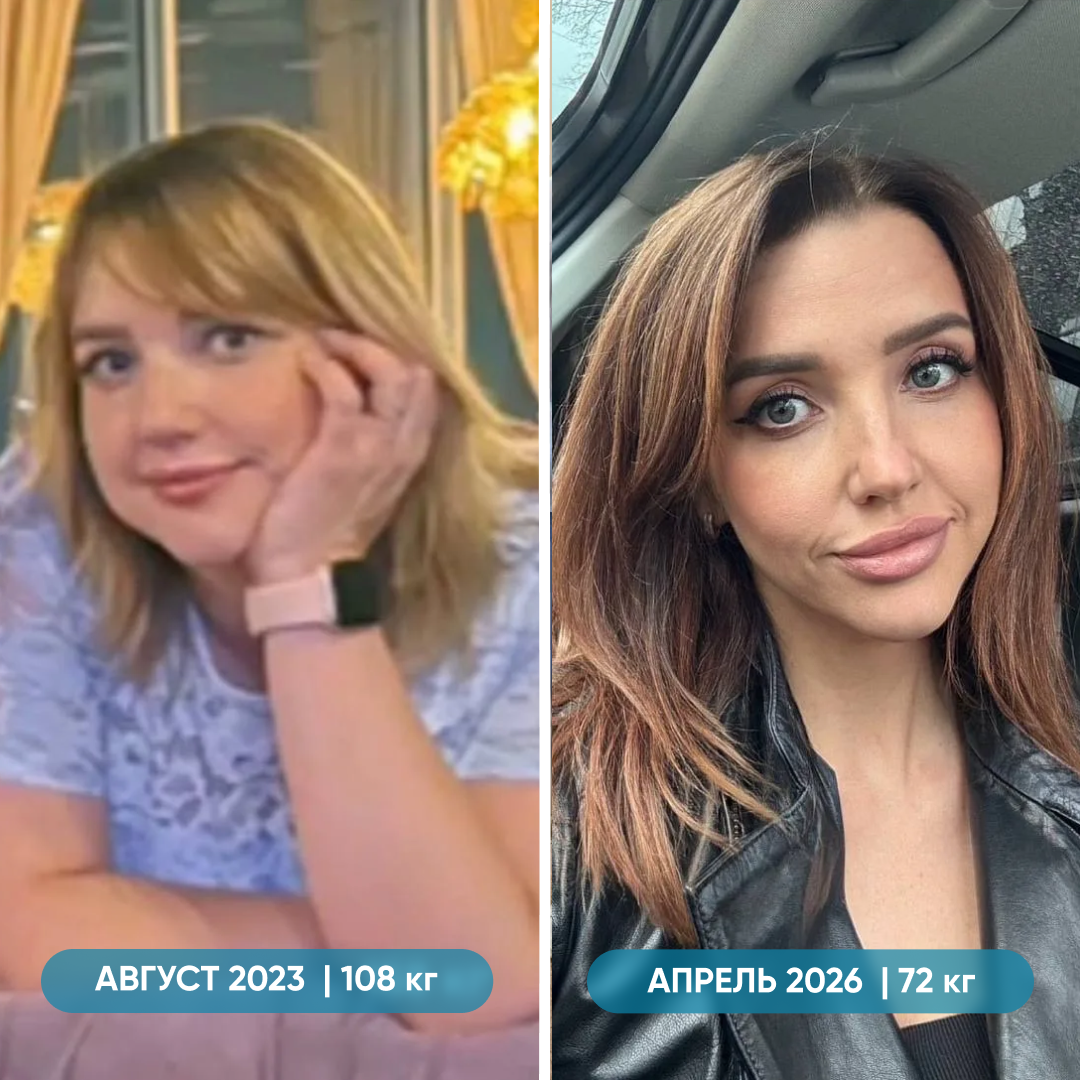 «Для тех кто еще сомневается в операции )) два разных человека» — написала моя пациентка Ольга, которой в 2023 году была выполнена продольная резекция желудка. Вот здесь можете посмотреть ее предыдущие «до и после» и видеоотзыв.