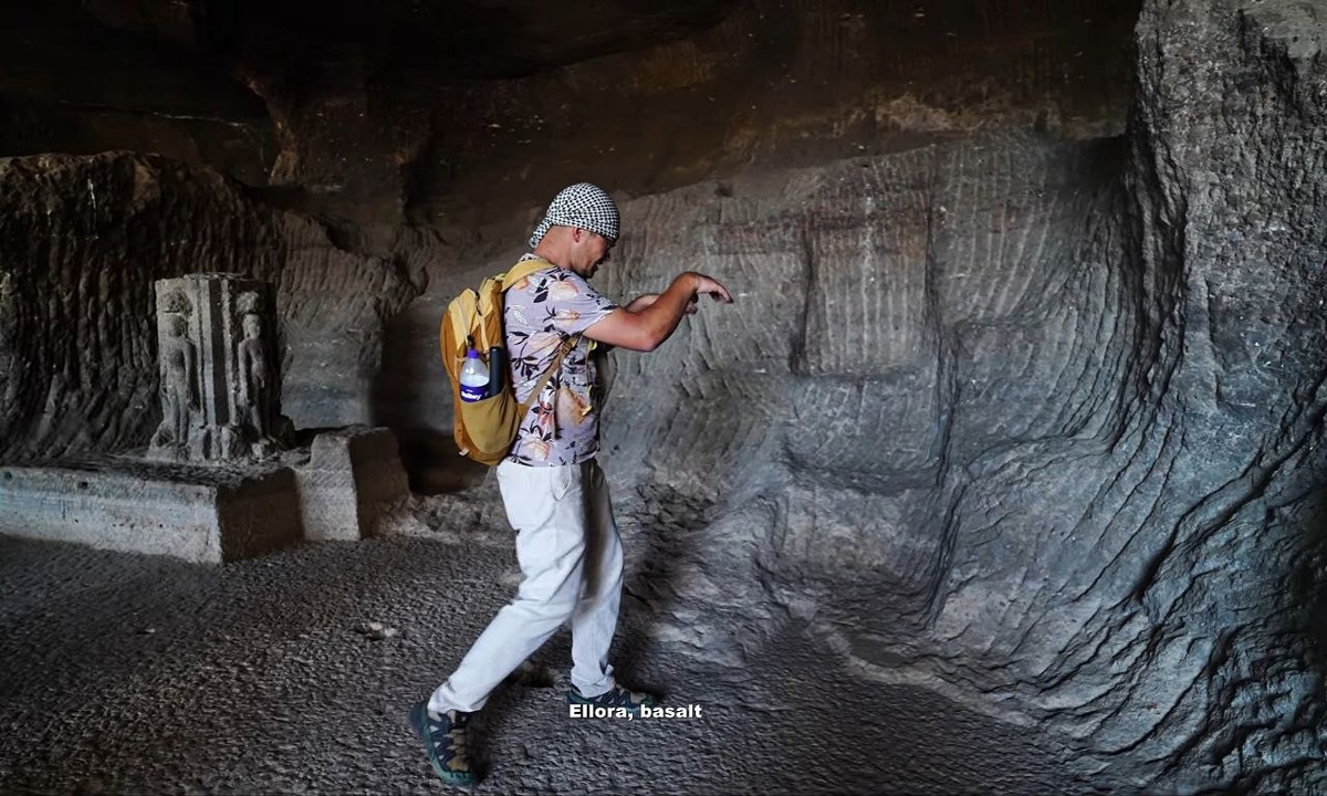 ? Этим вопросом неоднократно задавался Михаил Гейко, автор канала "Протоцивилизация". По его мнению, ни один известный нам инструмент не может глубоко проникнуть в твёрдую породу с помощью примитивной ручной техники без применения каких-то спецсредств. Однако, рассматривая следы инструмента в индийских пещерах, видно, что это именно "примитивная ручная техника": следы неровные, разной глубины, с разным шагом. На фото 3 можно видеть, как снимался слой за слоем (на фото 4 красным пунктиром показаны эти слои). Инструмент, который оставляет такой след - остроконечное зубило. Глубина его проникновения в твёрдую породу зависит от угла, под которым инструмент держат к поверхности. Чем острее угол, тем меньше снимается камня. И наоборот. О технике работы остроконечным зубилом хорошо рассказывает скульптор Атар Джабер: https://youtu.be/el7aAfaJ0UQ?si=-lnGaIReee2xpryw Также можно посмотреть, как современный камнерез выдалбливает остроконечным зубилом ёмкость, держа инструмент под разными уг