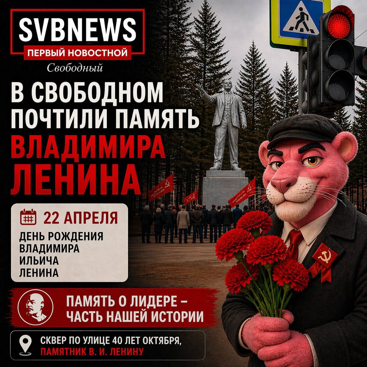 Сегодня, 22 апреля, в Свободном прошла памятная акция, приуроченная ко дню рождения Владимира Ильича Ленина. В сквере по улице 40 лет Октября, возле памятника, собрались представители коммунистической партии и жители города. Участники мероприятия почтили память исторической личности, возложили цветы и выразили уважение к его роли в истории страны. Подобные встречи традиционно проходят в этот день и собирают людей, для которых важно сохранить историческую память и преемственность поколений. ПОДПИСЫВАЙТЕСЬ НА НАС В ПРОЧИХ СОЦИАЛЬНЫХ СЕТЯХ ЧТОБЫ НЕ ПОТЕРЯТЬСЯ 📱 МАХ 📱 ВК 📱 Telegram 📱 Оk