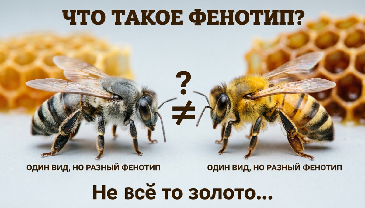 Это текстовой вариант аудиоответа Владимира Георгиевича. Фенотип – это индивидуальное развитие одной особи. Это эволюционное понятие развития отдельной особи и развития и эволюции всего живого существа. В данном случае у нас пчелиная семья выделяется чем? Каждая особь имеет свой генотип, но по отдельности жить они не могут, то есть они без неё нежизнеспособны. Они живут только тогда, когда образуют своеобразный организм – семью. Тут в семье определить генотип очень трудно, потому что пчёлы – все полусёстры, отцы у них разные, трутни вообще безотцовщина. Ну а