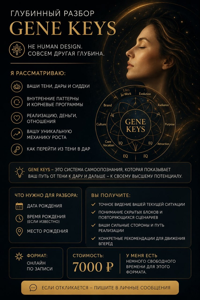 Я сейчас разбирала свой профиль через Gene Keys и, честно, некоторые вещи встали на место очень жёстко и очень точно