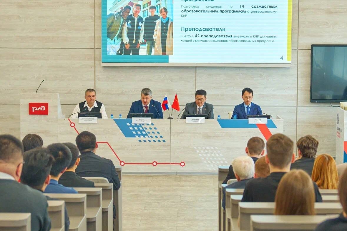». Главным событием стала открытая лекция Генерального консула КНР в Хабаровске господина Цзян Сяояна, посвящённая развитию Китая в рамках 15-й пятилетки. Спикер подчеркнул: программа нового пятилетнего плана уже дала мощный импульс межрегиональному сотрудничеству двух стран. Особое внимание он уделил трём ключевым направлениям: экономике, технологиям и международному сотрудничеству. Ректор ДВГУПС Владимир Буровцев в приветственном слове отметил важность совместных российско-китайских проектов в образовании, культуре, экономике и приграничном взаимодействии. Он акцентировал внимание на проекты, реализуемые в ДВГУПС и направленные на укрепление отношений между двумя странами. на проекты нашего университета, которые напрямую укрепляют партнёрство между странами. 💬 После лекции Цзян Сяоян ответил на вопросы участников. Китайские студенты ДВГУПС, задававшие вопросы на русском языке, интересовались возможностями трудоустройства и применения знаний, полученных в нашем вузе. Во встрече
