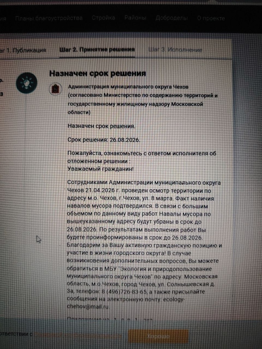 Пришел ответ от администрации!