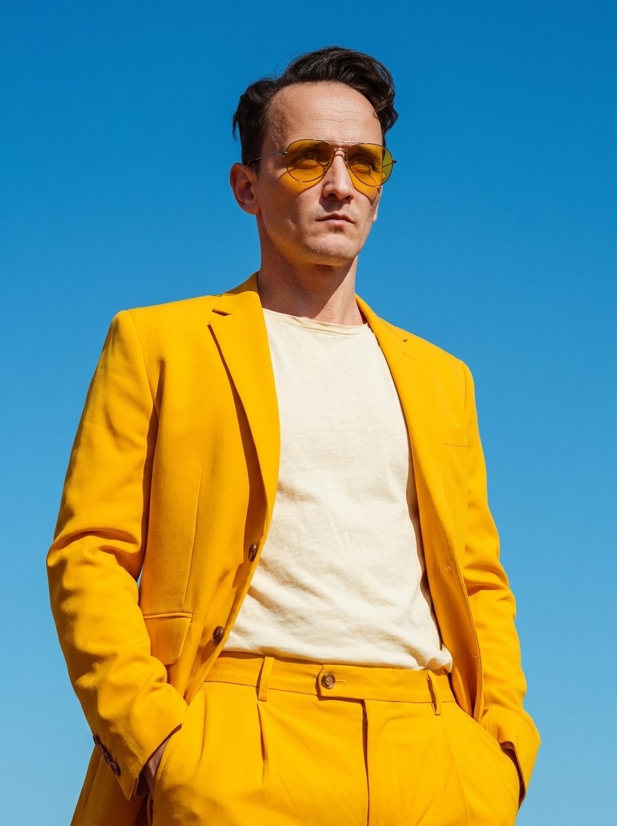 🎨 После долгой серой крымской зимы хочется одного — цвета. Много цвета. Всегда обожал мужскую одежду в ярких тонах. Желтый костюм? Пожалуйста. Голубой пиджак с цветочным галстуком? Еще как. Это не просто одежда — это настроение, это заявление, это способ сказать миру «я здесь» без единого слова. Сейчас развиваю новое направление в своих проектах — мужская мода и стиль. Не просто генерирую картинки, а погружаюсь в эстетику, детали, сочетание фактур и цветов. Эти кадры — про то, как классика встречается с характером. Про то, как один яркий акцент может изменить всё восприятие образа. Как вам такое сочетание: желтый костюм + винтажный Mercedes? Или голубой пиджак + яхты на фоне? #мужскаямода #стиль #яркиецвета #AIart #фэшн #визуал #Крым #mensfashion