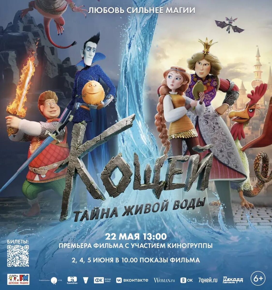 «Кощей. Тайна живой воды». В событии примут участие создатели фильма! 2, 4 и 5 июня в 10:00 пройдут дополнительные показы фильма. Время показов может быть изменено под пожелания заинтересованных групп. Продажи билетов скоро будут объявлены. Новый фильм – продолжение франшизы про главного антигероя сказочного мира Кощея. Первую часть «Кощей. Похититель невест» в 2022 году посмотрел 1 млн зрителей. А в продолжении Кощей и Варвара готовятся к свадьбе, но на пути их счастья неожиданно встает родная тетя невесты – правительница Тридевятого царства Моревна. В результате ее интриг Кощею предстоит отправиться за Живой водой в компании верного Колобка и доброго молодца Елисея. Их ждет множество испытаний и опасных приключений. Режиссер Роман Артемьев. В ролях: Виктор Добронравов (Кощей), Екатерина Тарасова (Варвара), Владимир Сычев (Колобок), Александр Якин (Елисей), Ирина Савина (Баба Яга), Роман Артемьев (Василиск) и другие. 6+ 😄 Мероприятия Нижний Новгород. Я местный! 📱 Telegram | �