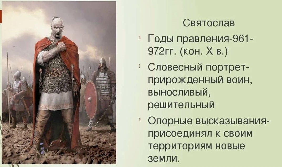 - Воспитание: Святослав рос в среде воинов, в атмосфере походов и битв. Его мать, Ольга, хоть и была христианкой, не стала навязывать ему свою веру. Она, видимо, понимала, что истинный князь должен быть сильным и самостоятельным, а не слепо следовать чужим заветам. Она дала ему хорошее воспитание, но главное — привила ему любовь к русской земле.