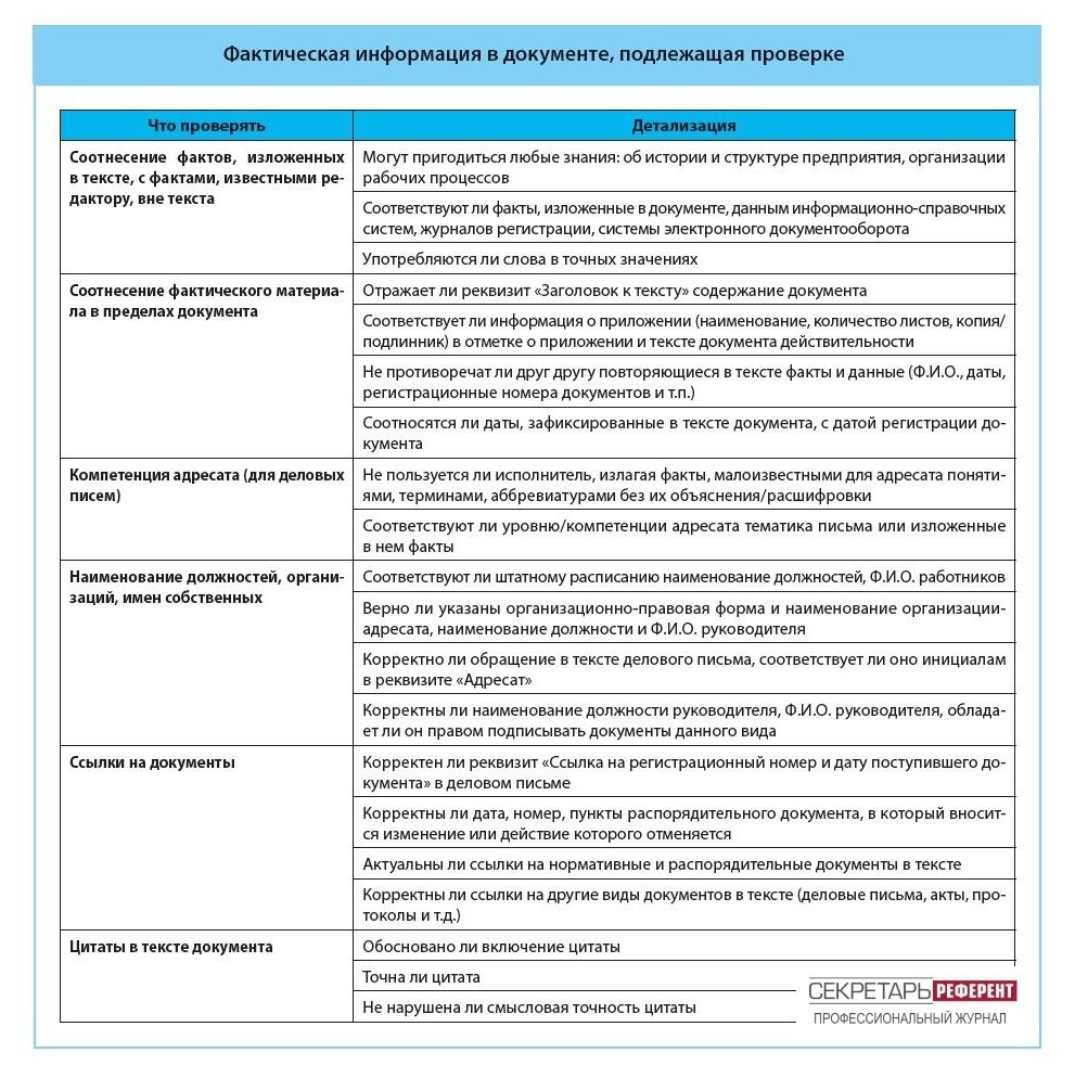 "! Разбираемся, какие факты в документах может и должна проверять служба делопроизводства. На примерах покажем, как отлавливать распространенные фактические ошибки – искаженную информацию, неверные ссылки на документы, цитаты и т.д. Забрать статью