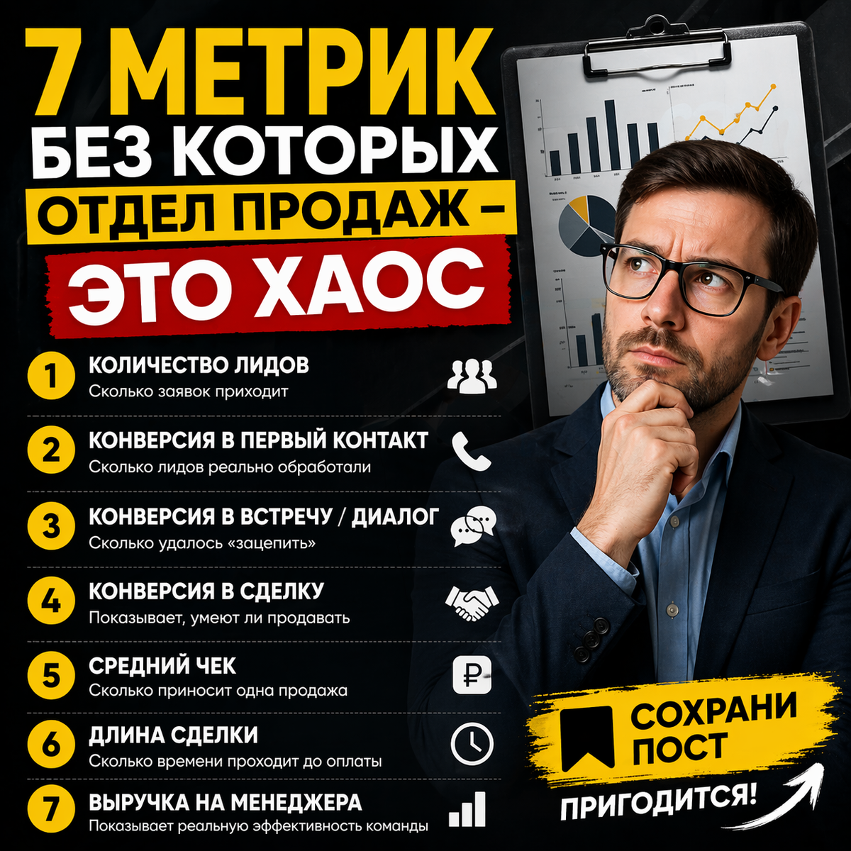 Если у вас нет этих цифр — у вас не отдел продаж, а угадайка. Сохрани этот пост — пригодится 👇 Сколько заявок приходит 👉 база всей системы Сколько лидов реально обработали 👉 здесь часто теряют до 50% Сколько удалось «зацепить» Ключевая метрика 👉 показывает, умеют ли продавать Сколько приносит одна продажа Сколько времени проходит до оплаты Показывает реальную эффективность команды Если вы: