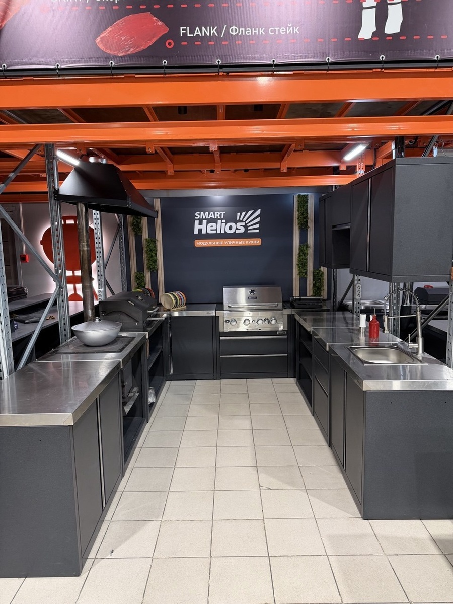 Мы обновили витрину в шоу-румах. Навесные Верхние модули для кухни теперь доступны их Вы можете протестировать. НАШ ОБЗОР НА ВК Навесной шкаф для специй 600*350*360 Навесной шкаф с сушилкой для посуды 900*350*720 Навесной шкаф с полкой 900*350*720 Навесной шкаф с полкой 600*350*720 глубина модулей 350 мм Высота: 720/360 мм Гирина: 600/900 мм НУ и обязательно Газовые гриль кухни Helios Smart (скоро снимем обзор с рецептом) ОБРАЗЦЫ УЖЕ ПРЕДСТАВЛЕНЫ В НАШИХ ШОУ-РУМАХ ✅ Цена модуля комплекта гриль + модуль всего 129 900р ✅ ПЛЮС В городах присутствия 🚗 ДОСТАВИМ и СОБЕРЕМ за СВОЙ СЧЕТ 🎁🚰 А ТАКЖЕ ПОДАРИМ ФИРМЕННЫЙ КРАН ПРИМЕР КОМПЛЕКТАЦИИ: На видео Угловая кухня. КОМПЛЕКТАЦИЯ НИЗ А 300 см НИЗ Б 210 см Верх А 210 см Уличная кухня Helios smart 8 модулей (Газовый гриль нерж. сталь 4гор, шкаф с мойкой, боковая горелка) А 1 Газовый Гриль из нержавеющей стали + Модуль под газовый гриль с двумя ящиками Цена 129 900 ₽ ширина 900мм 1 Модуль уличной кухни SMART-1200 Шкаф угловой универса