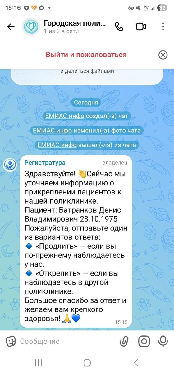 Фишинг продолжается теперь уже в MAX. Создают чаты с людьми под видом Поликлиники. Блокируйте и жалуйтесь на фейковый аккаунт и мошенничество.