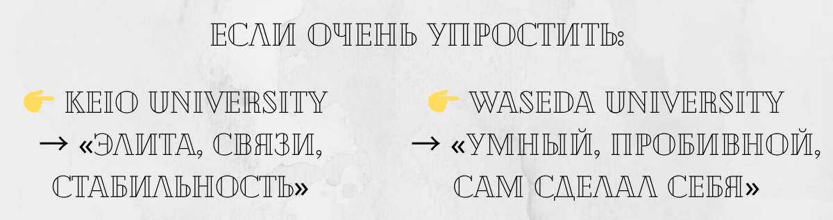 👉 Keio vs Waseda — это не просто про образование. Это про разный тип “успешного человека” в Японии.