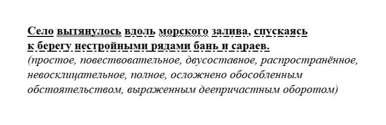 (1)Летим над Поморьем. (2)Внизу, под крылом самолёта, расстилалась бурая приморская равнина, оттенённая белизной тающих снегов. (3)Местами она поросла лесами, покрылась прихотливыми разводами болотных топей. (4)Нигде не видно человеческого жилья… (5)Но вот показалось море, вцепившееся в сушу кривыми пальцами своих заливов, ещё покрытых растрескавшимся льдом. (6)До чего же суровый, нелюдимый край! (7)Кстати, это впечатление не исчезло и после нашего приземления в селе. (8)Село вытянулось вдоль морского залива, спускаясь к берегу нестройными рядами бань и сараев. (9)Нас, конечно, удивило отсутствие в деревне наезженных дорог. (10)Лишь деревянные тротуары с лестницами, сколоченные рыбаками, соединяют дома между собой. (11) Перевозки в этих местах осуществляются только зимой на оленях, когда снега смягчают неровность скал. (12)Здесь во всём ощущается атмосфера поморского села: в перевёрнутых лодках, ожидавших на берегу начала рыбалки, в огородах, прилепившихся на скальных уступах в бесконе