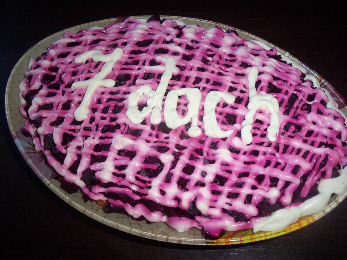 Есть у меня один секретик, который немного облегчит работу хозяюшкам при оформлении и приготовлении блюд со сметаной или майонезом. Ну а любители сладкой выпечки могут использовать его в работе с кремами. Для смазывания слоёв салата или оформления верхушки мы часто используем майонез или другой соус, размазывая его ложкой по поверхности. Кусочки овощей при этом часто липнут к ложке, не давая равномерно распределить соус. Я для этих случаев использую подобие кондитерского мешка. Беру обычный тонкий полиэтиленовый пакет, наливаю в него майонез, отрезаю один уголок — делаю очень маленькое отверстие, через которое легко выдавливать соус тонкой с
