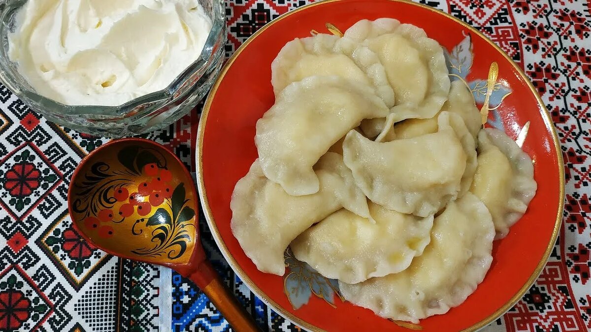 Подача. К вареникам подают сметану, жареный лук, шкварки. Сладкие вареники — с мёдом, сметаной, ягодным соусом.