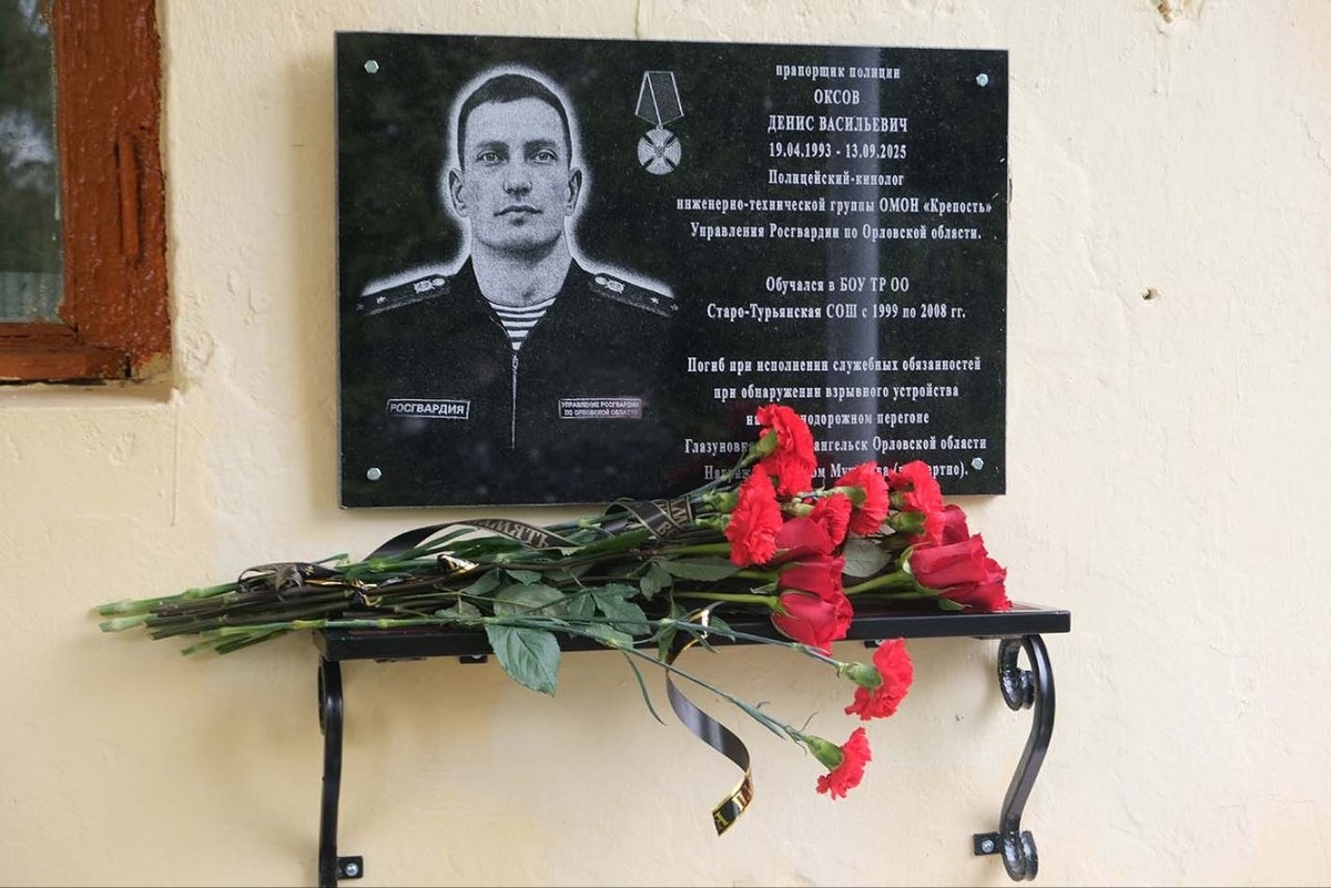 Церемония открытия памятной доски и «Парты Героя» прошла в Старо-Турьянской школе Троснянского района, в которой учился сотрудник ОМОН «Крепость» регионального Управления Росгвардии прапорщик полиции Денис Оксов. ➡В мероприятии приняли участие родственники росгвардейца, представители регионального управления ведомства, педагоги и ученики школы. ➡Также правоохранители посетили место захоронения сослуживца, где возложили цветы и почтили его память минутой молчания. 📌В сентябре 2025 года трое сотрудников Росгвардии погибли в результате подрыва взрывного устройства на железнодорожных путях в Орловской области. Указом Президента Российской Федерации погибшие росгврадейцы удостоены орденов Мужества (посмертно). ⚔️ Росгвардия. Центральный округ 👍 Центральный округ в Max