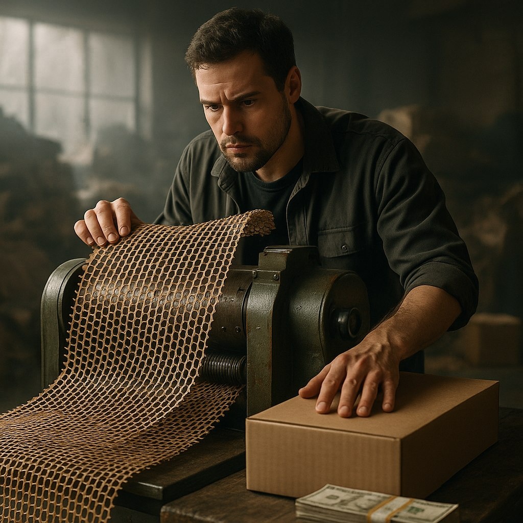 ? На свалках лежит богатство! Магазины выбрасывают коробки, а мы превращаем их в упаковочный наполнитель. 📦 Берём старый гофрокартон, прокатываем через станок и получаем гибкую сетку для хрупких товаров. 💰 Стартовый капитал всего 165 000 ₽. При продаже 50 кг в день можно зарабатывать 50 000 ₽ в месяц с возможностью на 100 000 ₽ при увеличении объёма. Но есть риск: стабильный объём картона может не всегда быть под рукой. Полный разбор — в тг. Ты бы рискнул запустить такой бизнес?