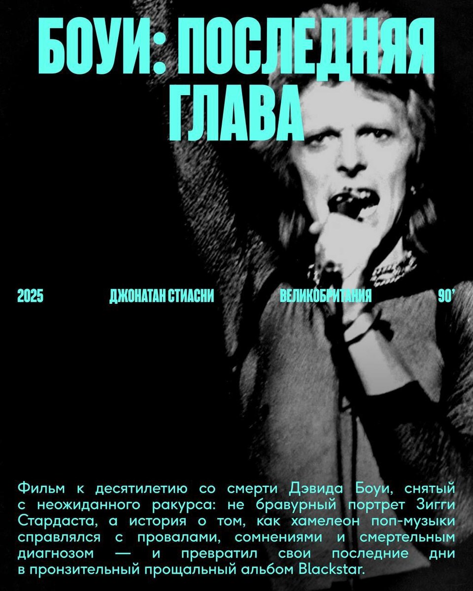 программа в этом году насыщенная: фильм Вернера Херцога, режиссерский дебют Жюльет Биноши и картина о любимом Боуи. А еще — несколько фильмов для тех, кто любит архитектуру, фильм об одном из самых странных конкурсов в мире — конкурсе по приготовлению овсянки, фильм о людях, проживших целый век и еще куча всего (к слову, это лишь первая часть программы!) записываем даты (4-14 июня) и покупаем заранее билеты
