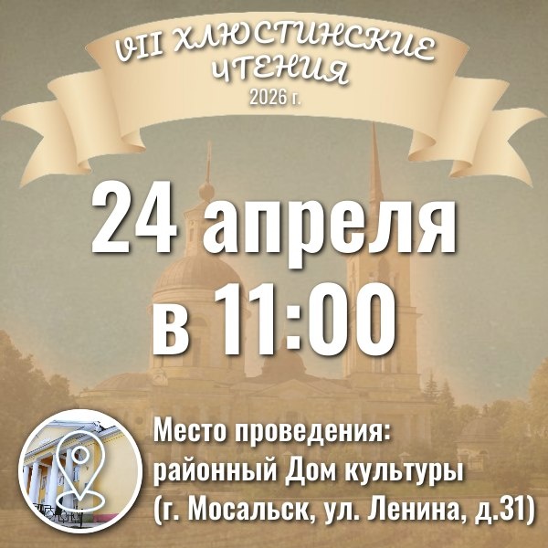 24 апреля в 11:00 💫Хлюстинские чтения Место проведения ➡ районный Дом культуры (г. Мосальск, ул. Ленина, д.31) #АдминистрацияМосальскогомуниципальногоокруга #КкльтураМосальскогоОкруга #КДЦ