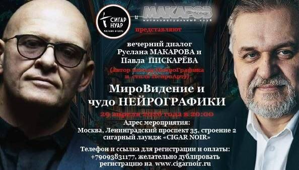 📆 В следующую среду, 29 апреля, в Cigar Noir состоится творческий вечер с Павлом Пискарёвым - автором метода Нейрографика. И это возможность не просто услышать о подходе, а разобраться в нем напрямую - без пересказов и интерпретаций. Нейрографика - это метод, который строится на точной логике: 📍«нейро» - про работу внимания, когнитивных функций и нейронных связей, 📍«графика» - про визуальный язык, который помогает увидеть задачу, уточнить смысл и найти решение. Метод был создан Павлом Пискарёвым (Ph.D., профессор) в 2014 году и довольно быстро вышел за рамки личной практики. Не потому что «модно», а потому что отвечает на понятный запрос: стать творцом собственной жизни. Сегодня Нейрографика применяется в разных контекстах: от работы со стрессом до бизнес-задач и командных процессов. 🎙️ Модератор вечера - Руслан Макаров, основатель Интеллектуального клуба «МАКАРОВ». 📅 29 апреля 🕖 19:00 - сбор | 20:00 - начало 💰 4 500 ₽ *во время вечера будет проводиться съемка. Регистрация