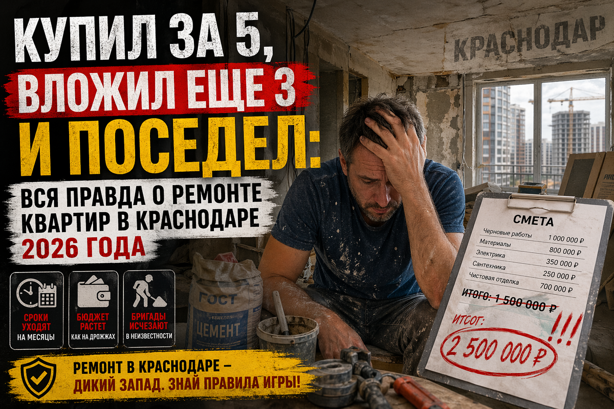 Ежедневно я вижу, как крепкие, уверенные в себе люди с Севера или Урала ломаются о местный строительный рынок. В 2026 году ремонт в Краснодаре — это дикий запад, где выживает только тот, кто знает правила игры. Сегодня я расскажу, как местные бригады разводят «понаехов» на деньги, и почему дешевая смета — это прямая дорога к кассовому разрыву.