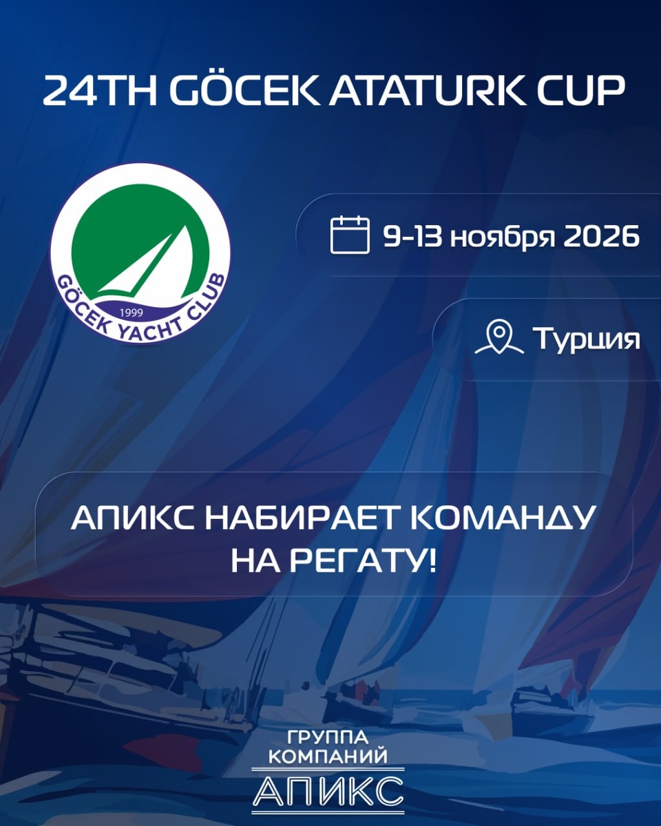 ! Второй год подряд поднимаем паруса и зовём вас с собой. С 9 по 13 ноября 2026 года отправляемся в Турцию, на международную регату «24th Göcek Ataturk Cup». Регистрация по ссылке: clck.ru/3SysSE 📣 До встречи на борту! #АпиксРегата #GöcekAtaturkCup