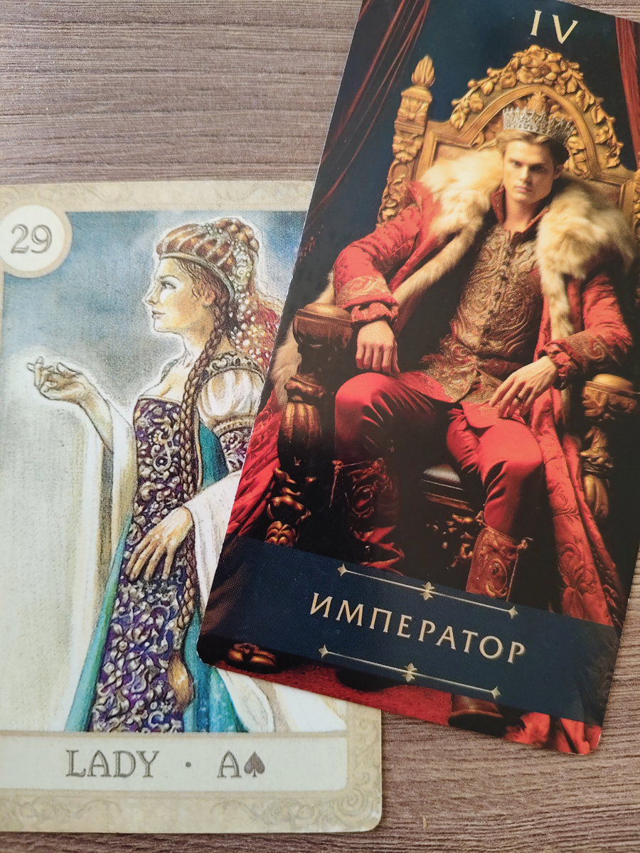 "Император" же олицетворяет власть, структуру, порядок, стабильность и отцовскую фигуру. В сочетании с "Женщиной", он говорит о том, что эти женские качества будут гармонично дополняться сильным, стабилизирующим началом. Это может означать, что в вашей жизни появится или проявит себя влиятельный человек, чья мудрость и решительность помогут вам в достижении целей. Или же, эти качества проявятся в вас самих: способность принимать ответственные решения, создавать четкие планы и упорядочивать свою жизнь, сохраняя при этом мягкость и заботу.