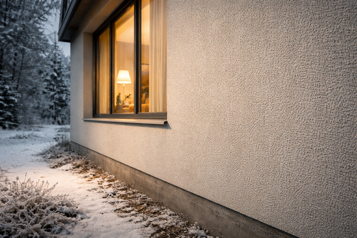 Энергоэффективность фасада в 2026 году — это уже не опция, а реальная экономия на отоплении и комфорт внутри дома круглый год. Штукатурка — это не просто финишный слой. Современные смеси с пористой структурой добавляют дополнительное термическое сопротивление. Когда наносишь штукатурку поверх утеплителя или даже на голую стену — получается ровный, плотный барьер, который удерживает тепло внутри. Получается очень красиво: фасад гладкий или с лёгкой текстурой, а дом становится заметно теплее без лишних слоёв. В фасадных системах штукатурка играет связующую роль. Она фиксирует утеплитель, защищает его от дождя, снега и ветра, не даёт влаге проникать. Гидрофобные добавки отталкивают воду, но паропроницаемость остаётся высокой — стены дышат, конденсат не скапливается, плесени нет. Представь: зимой тепло не уходит наружу, летом дом не перегревается, а внутри всегда стабильный микроклимат. Морозостойкость тоже напрямую влияет на энергоэффективность. Если штукатурка трескается от циклов заморо