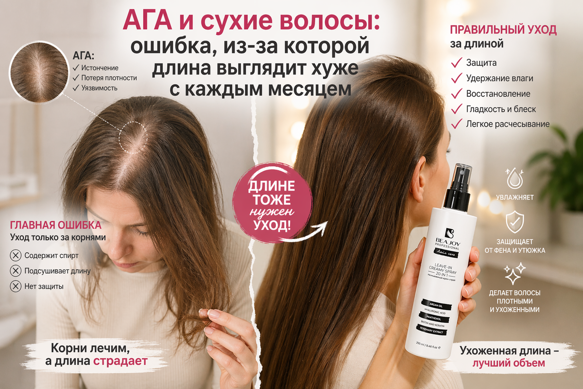 корни получают уход, а длина становится сухой, пушистой и ломкой. И визуально кажется, что волос стало ещё меньше.