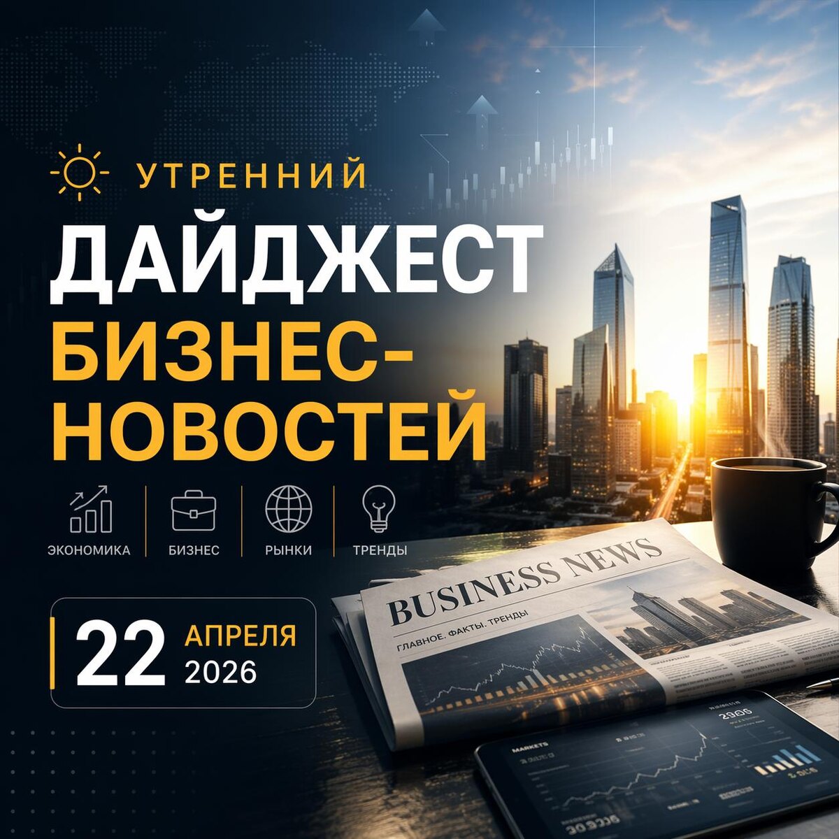 22 апреля 2026. Часть 2 Россия: экономика и бизнес [Крупные компании, регуляторика] ЦБ выдал предписание Делимобилю. Суть: Банк России официально сообщил, что ПАО «Каршеринг Руссия» нарушило требования закона о противодействии инсайду и манипулированию рынком, и потребовал устранить нарушения. Почему это важно: для публичных компаний это напоминание, что регулятор внимательно смотрит на disclosure и рыночное поведение эмитентов. Дата: 21 апреля 2026. Источник: Банк России. Мир: экономика и бизнес [Макро, центробанки, геополитика] Американские индексы развернулись вниз на теме Ирана. Суть: S&P 500, Dow и Nasdaq потеряли по 0,6% после того, как сорвались ожидания по переговорам о продлении ceasefire с Ираном. Почему это важно: рынок по-прежнему очень чувствителен к любым рискам для нефти, логистики и инфляции. Дата: 21 апреля 2026. Источник: AP. [Макро, центробанки, регуляторика] Кевин Уорш прошел ключевые слушания на пути к ФРС. Суть: Reuters сообщило о сенатских слушаниях по канди