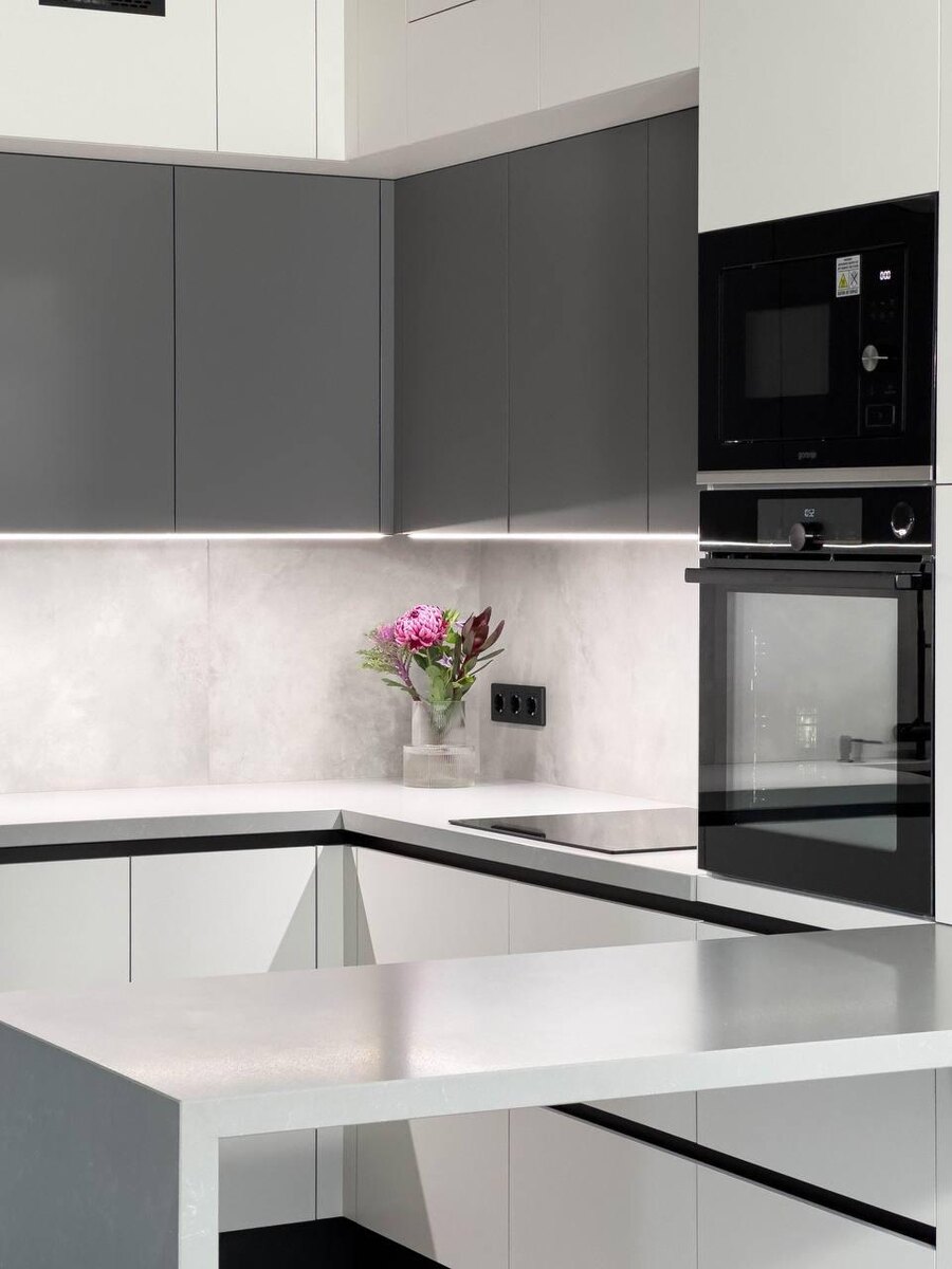 ! Василий и Елена пришли к нам уже с готовым дизайн-проектом. И это как раз тот момент, где начинается настоящая работа. Потому что картинка — это только половина задачи. Всё остальное — как кухня будет жить в реальности. Мы пересобрали проект: добавили ящики там, где их не хватало, встроили выкатную колонну, аккуратно решили вопрос с вентиляционным коробом и доступом к нему, скорректировали электрику. Не потому что «хотелось переделать», а потому что изначально не было продумано, как этим будут пользоваться каждый день. Так бывает часто — дизайнеры интерьера делают красиво, но не всегда глубоко заходят в техническую часть кухни. Мы смотрим иначе — собираем проект целиком, чтобы потом не приходилось привыкать к неудобствам! Отдельно продумали момент с потолком, установили специальные планки, чтобы всё встало точно и без доработок после. В итоге получилась кухня, где много хранения, логичная система, чёткие линии. Если вам важен не только внешний вид, а то, как кухня будет вести с