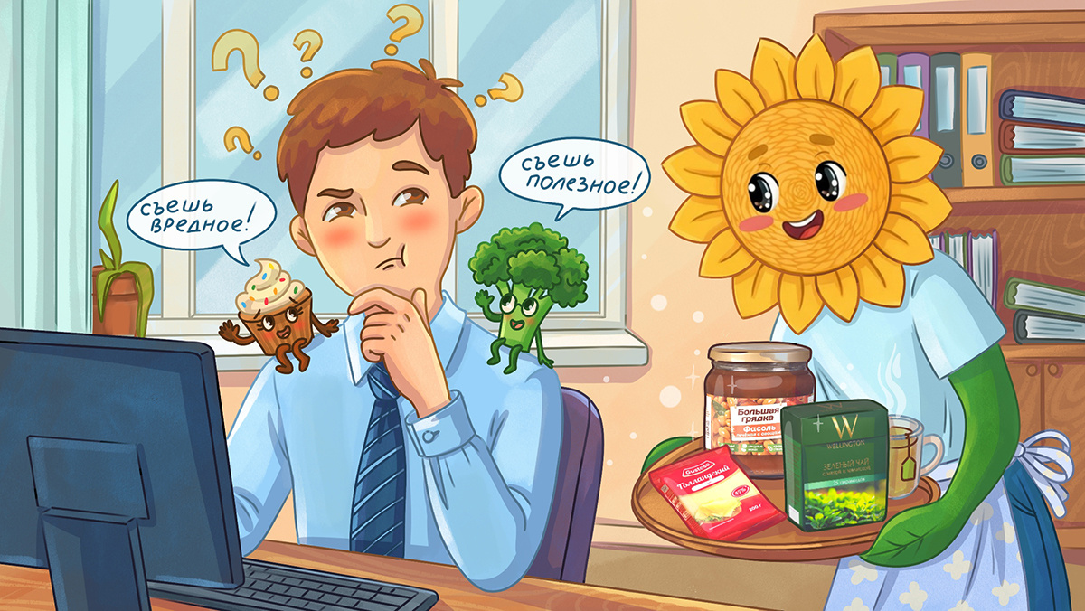 Если вы думаете, что я, Подсолнух, целыми днями только стою и украшаю собой мир, то вы сильно недооцениваете мой жизненный опыт. Я, между прочим, наблюдаю за людьми с утра до вечера и вижу одну и ту же картину: сначала «нам некогда поесть», а потом «ой, что-то я съел вообще всё, что было в холодильнике». Дело в том, что в рационе отсутствуют нормальные сбалансированные перекусы. А ведь именно они спасают от ночного набега на кухню. Когда вы сильно голодны, мозг становится очень убедительным продавцом вредной еды. Он нашёптывает: «Возьми пирожное, ты заслужил». Часто у нас нет времени и желания заниматься готовкой и мы отдаём предпочтение быстрым и не очень полезным перекусам. Такая еда не насыщает наш организм, а чувство голода быстро возвращается. Так и появляются нежелательные цифры на весах… Лучше заранее подумать о перекусах. Например, взять с собой из дома что-то полезное. Что именно? Сейчас расскажу! Хороший перекус — это когда есть и белок, и жиры, и что-то для энергии. К пример