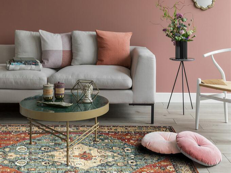 - Цветовая перекличка. Поддержите основные оттенки ковра парой декоративных подушек, вазой или картиной в той же цветовой гамме. Это свяжет интерьер в единую композицию.