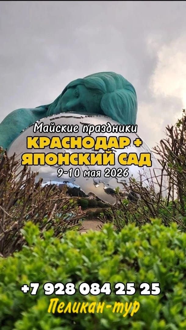 Экскурсионный Тур в Краснодар на 09.05-10.05.2026 ‼️ВНИМАНИЕ МЕСТА ОГРАНИЧЕНЫ ‼️ 👘 2 дня/1ночь 🏮 Выезд утром в 2 мая ориентировочно 05:00 План нашего путешествия: 📅 1- ый день 🛎 Заселение в отель 🌺 Вечером едем в сказочный парк Галицкого на экскурсию с гидом наслаждаться атмосферой парка, "Парком Облаков" и кроличья нора и гранд каньон. ⏰ Свободное время 📅 2-ой день ☀️ Ранний подъем выезд в японский сад ⛩ 🚌 Возвращение домой через Oz Молл Фирма оставляет право менять последовательность экскурсии с сохранением объектов посещения. Цена тура: 7500 Руб/Чел (в стоимость включен: проезд, проживание в отеле, экскурсия в парке, сопровождение. Доп расходы: Питание, Сувениры Информация о нас: 💙Наш адрес: г. Нальчик, пр. Ленина, 32, гост. Россия, оф. 245. 💙Подробнее на сайте: pelican07.ru 💙Позвоните: +7 928 084 25 25, +7 918 728 39 79