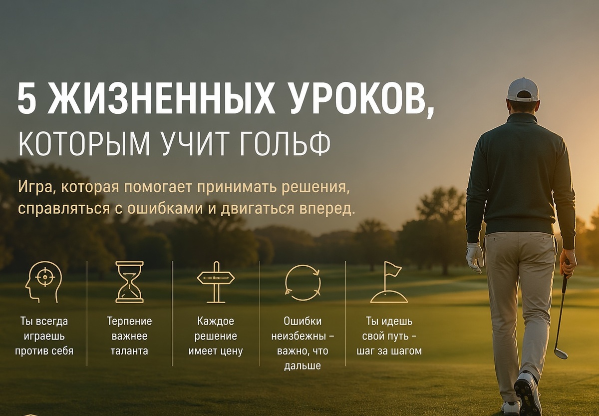 Есть только ты, поле и следующий удар. И именно поэтому гольф учит вещам, которые редко объясняют напрямую. 🧠 1. Ты всегда играешь против себя В гольфе нет «защиты» соперника.