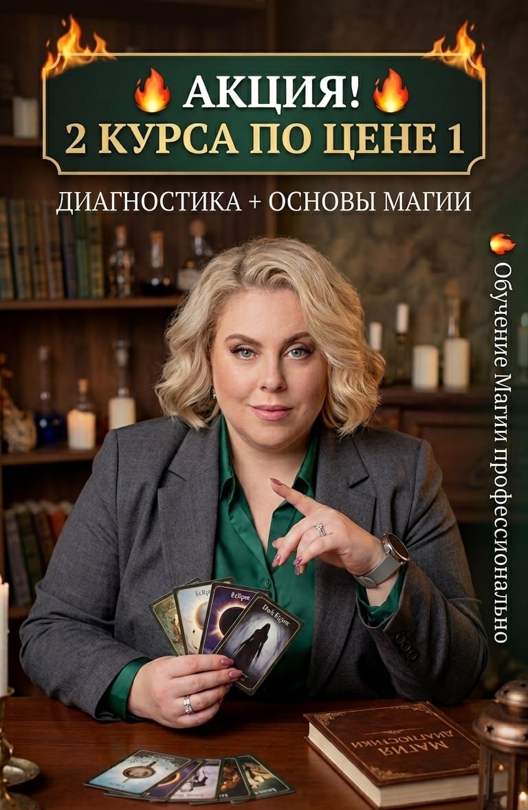 Ритуалы не работают, если вы боретесь с симптомами, не зная диагноза. Чтобы получить результат, нужна система: Точная диагностика ➡️ Правильное действие. Только до 26 апреля: при покупке курса по диагностике вы получаете базу по ритуальной магии в подарок. Что в комплекте? 1. Курс «Диагностика негатива и методы чисток» Здесь вы научитесь видеть ситуацию насквозь. В программе предусмотрено обучение работе с Оракулами «Затмение» и «Негатив», выявление блоков в финансах или отношениях, а также поиск истинных авторов воздействий. 2. Курс «Основы магической работы» (в подарок) Это ваша фундаментальная база и техника безопасности. Вы узнаете магические законы и причины, по которым одни обряды работают, а другие нет. Мы подробно разберем правила работы на перекрестках, технику откупов и способы постановки личной защиты. Условия акции: 🔥 2 курса: от 36 990 руб. 📅 Акция ограничена по времени и завершится уже 26 апреля. Перестаньте действовать наугад. Начните практиковать профессионально