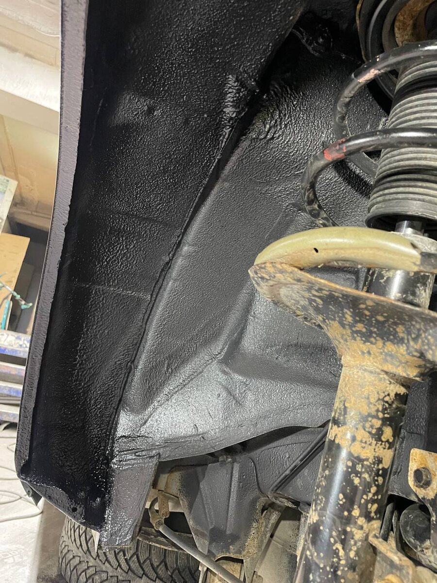 Голый метал загрунтовали эпоксидным грунтом и покрыли распыляемым герметиком
