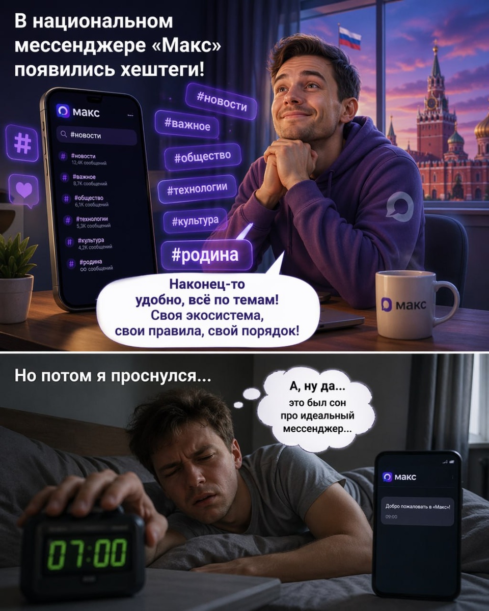 В национальном мессенджере «Макс» появились хештеги! 🙈 Но потом я проснулся… 😝
