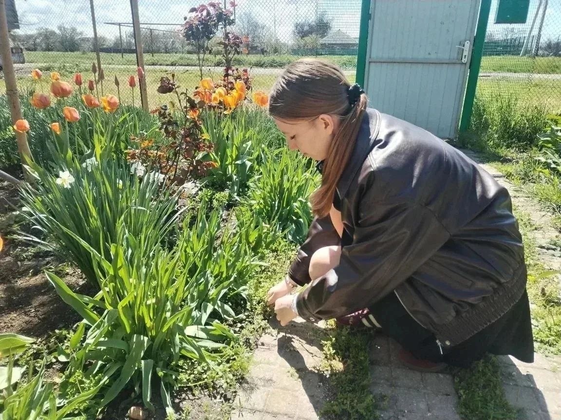 В преддверии 1 мая казаки 34 казачьей школы по. Приморского, Приморско-Ахтарского округа, присоединились к акции «Труд во благо» и помогли Евгении Ивановне Волох с прополкой палисадника.