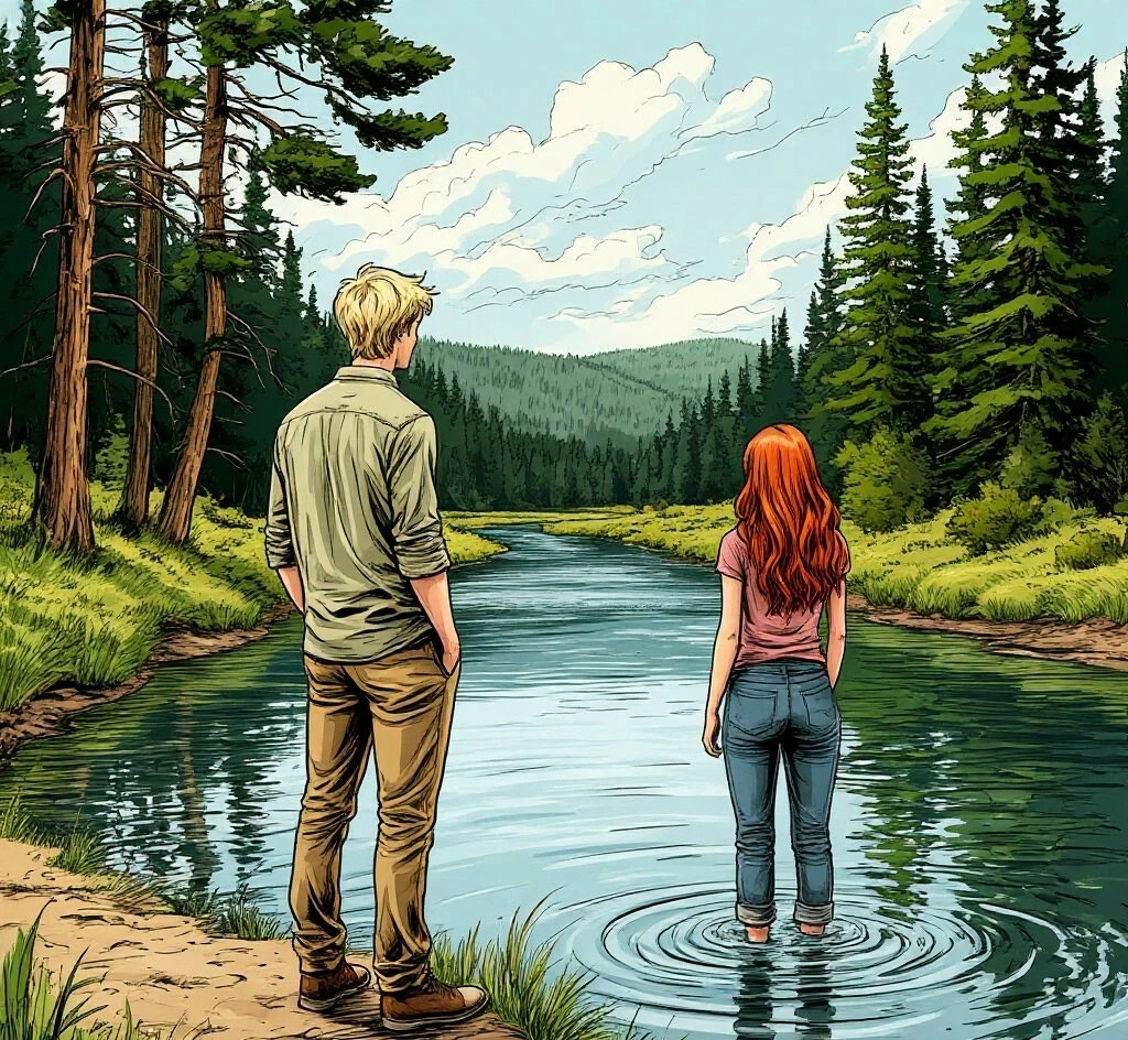 Та молча кивнула, и медленно побрела в воду. Течение сегодня было не таким сильным, так что можно было не бояться быть сбитой потоком. Девушка медленно брела, держа в ладонях деревянный оберег на обычной нитке. Пройдя несколько метров, и оказавшись в воде по колено, она нагнулась вперёд, и погрузила ладони в воду. Разжав их, девушка увидела, как деревянный оберег подхватило течение и понесло вперёд.