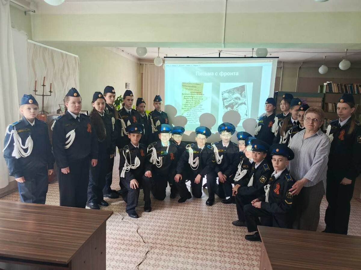 Писем белые стаи прилетали на Русь. Их с волненьем читали, знали их наизусть. Эти письма поныне не теряют, не жгут. Как большую святыню сыновьям берегут. Отзвуки Великой Отечественной войны до сих пор живут в каждом сердце. Нет такой семьи, которую не затронула бы война. Письма с фронта – неотъемлемая часть повседневной жизни военных лет. Это откровения людей, странички их радости и боли. Фронтовые письма писались в перерывах между боями, в госпиталях, на передовой, в землянках. 22 апреля библиотека-филиал № 2 провела литературно-музыкальную композицию «Письма с фронта» в клубе «КИВИС» для учащихся 5К и 9Б классов МБОУ СОШ № 5 с кадетскими классами им. А. Т. Губина. Присутствующие познакомились с историей солдатских писем – живых свидетельств мужества и героизма нашего народа в годы войны, самых дорогих реликвиях, которые бережно хранятся в семьях. А также узнали, что на пике развития информационных технологий, дети и взрослые продолжают писать письма бойцам специальной военной операци