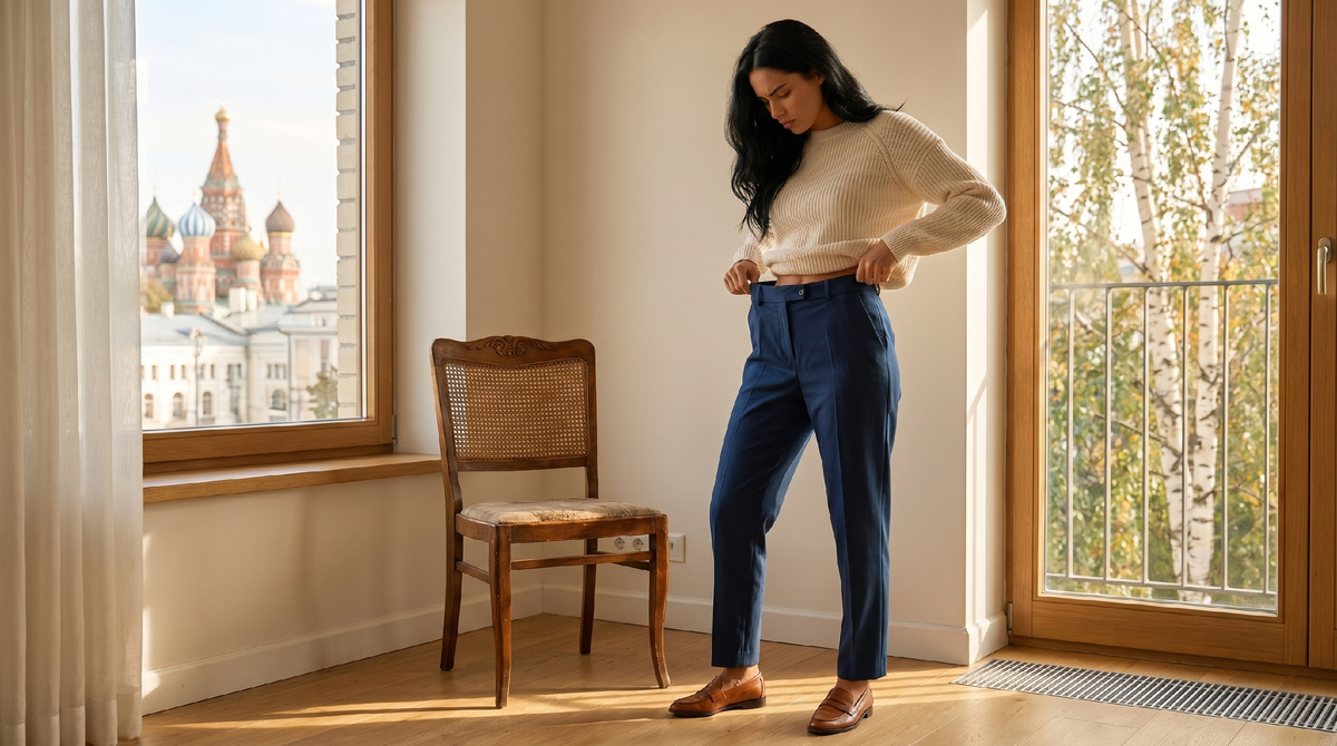 Анна из Екатеринбурга купила брюки с высокой посадкой — широкие, мягкие, на резинке. В магазине казалось: вот оно, идеальное решение. Удобно, высокая талия, живот прикрыт. Дома надела, вышла на улицу. Вечером муж спросил: «Ты сегодня в пижаме?» Она не ответила. Но брюки повесила в дальний угол шкафа.