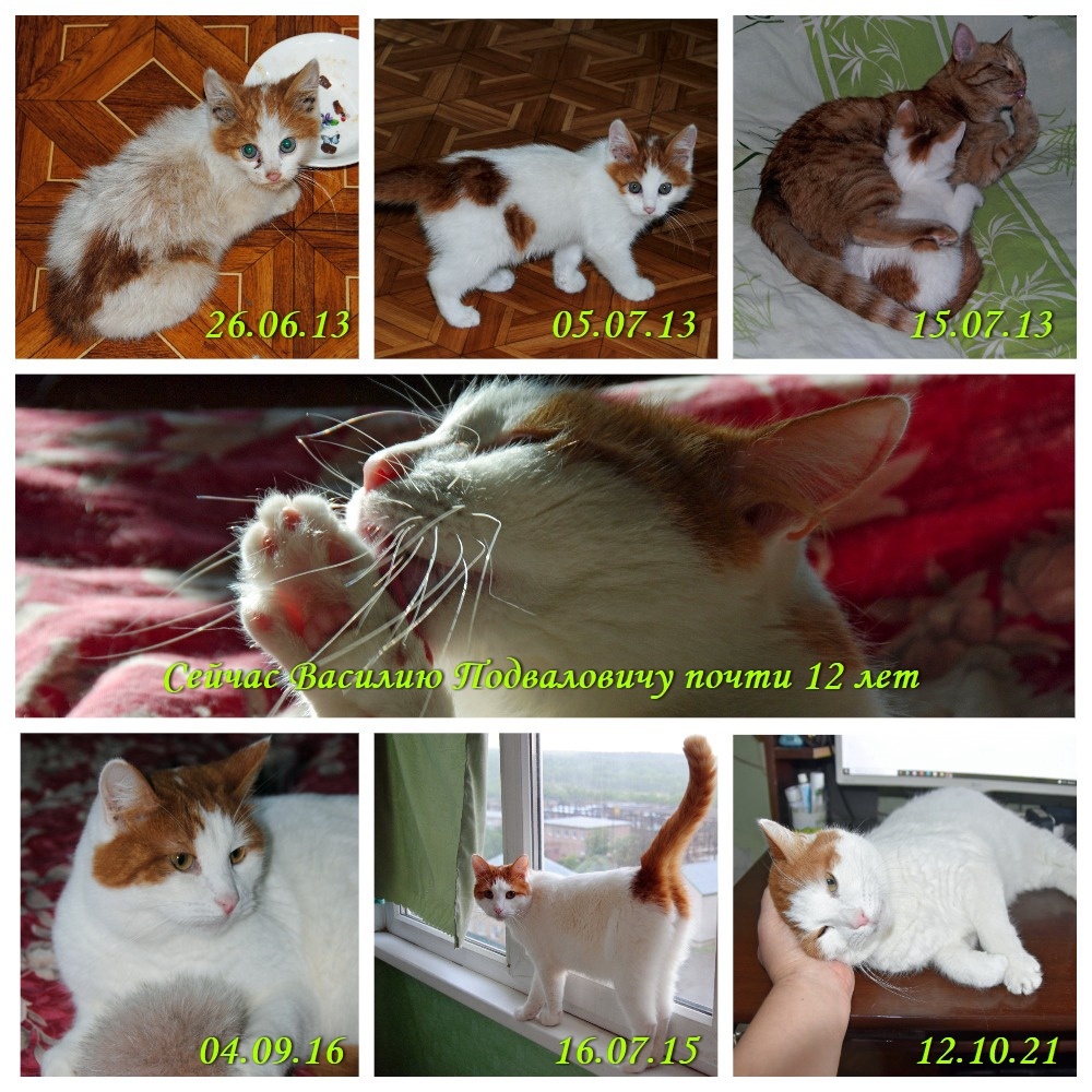 Дела домашние А сейчас ему почти 13. Он примерно в начале мая родился. Коллаж делала для сообщества в ВК, но он им чем-тоне понравился, не стали его показывать, ну и фиг с ними. Вот - пригодился. Васька приболел. Пару недель сидел кислый. Есть не ходил, я его три раза в день беру, несу в кухню или ванную и кормлю. Ест. Хорошо ест, но не видела, чтобы пил. Хотя пакетики влажные. Стала давать ему суп Феликс. Лакает, а кусочки подъедает кто-то другой. Пробовала варить ему бульон. Без соли. Вкусный.. Он не стал, пришлось посолить и выпить самой. Наша врач работает реже, чем обычно. Вот мы ее сегодня дождались и поехали. Не хотела я к другим. У Василия Подваловича опухоль на щеке слева. И лимфоузел немного опух. Но не так, как разносило их у Пуши и Степки. Прописали лекарства. Курс Ронколейкин - 10 дней и Линкомицин - 3 ампулы через день. Будем колоться! хорошо - Озон рядом открыли. А то инсулиновых шприцов у меня пока нет в запасе.. А через 3 недели снова поедем в клинику. Такие дела.