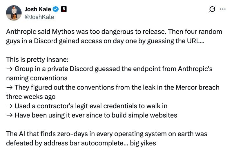 Мем дня: секретную модель Claude Mythos от Anthropic вскрыли тупо перебором URL — без магии, чисто классика