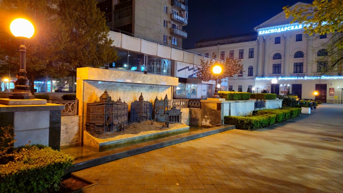 Вечерний Краснодар словно оживает в мягком свете фонарей, укутывая улицы тёплым золотистым сиянием