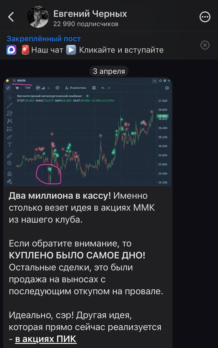 Черных — как раз из тех, за кем стоит наблюдать. Он публично торгует на российском рынке, разбирает акции, дивиденды, курс доллара и нестабильность, показывая логику своих решений. Без воды и без сказок про легкие деньги. Если нужен сильный канал на рынке РФ — вот ссылка: https://max.ru/trader_chernyh Лучше закрепить его в чатах, чтобы не терять: max.ru/trader_chernyh #promo