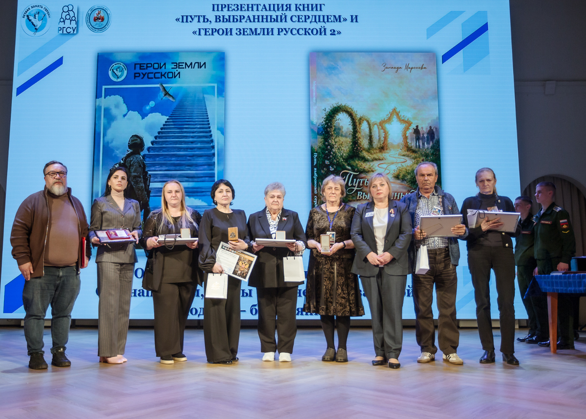 В минувшую субботу, 18 апреля, в Российском государственном социальном университете состоялась памятная встреча. На ней наши друзья и партнеры, Межрегиональная общественная организация «ВЕЧНАЯ ПАМЯТЬ ГЕРОЯМ», презентовали две новые книги, выпущенные при их непосредственном участии и содействии: «Герои земли русской. Том 2» и «Путь выбранный сердцем». Издания посвящены памяти погибших участников специальной военной операции. Созданные книги – это результат большой и тщательной работы, цель которой – сделать так, чтобы каждый герой был замечен, его история была услышана, а его вклад в защиту Родины был увековечен. Особой, эмоциональной частью мероприятия стало вручение Памятных наградных жетонов «Они сражались за Родину». Эти награды были переданы родным и близким погибших военнослужащих. Церемония стала данью уважения и символом общей памяти о подвиге солдат и офицеров, отдавших жизни при выполнении воинского долга. Для семей героев это событие имело глубокое личное значение, подчеркнув