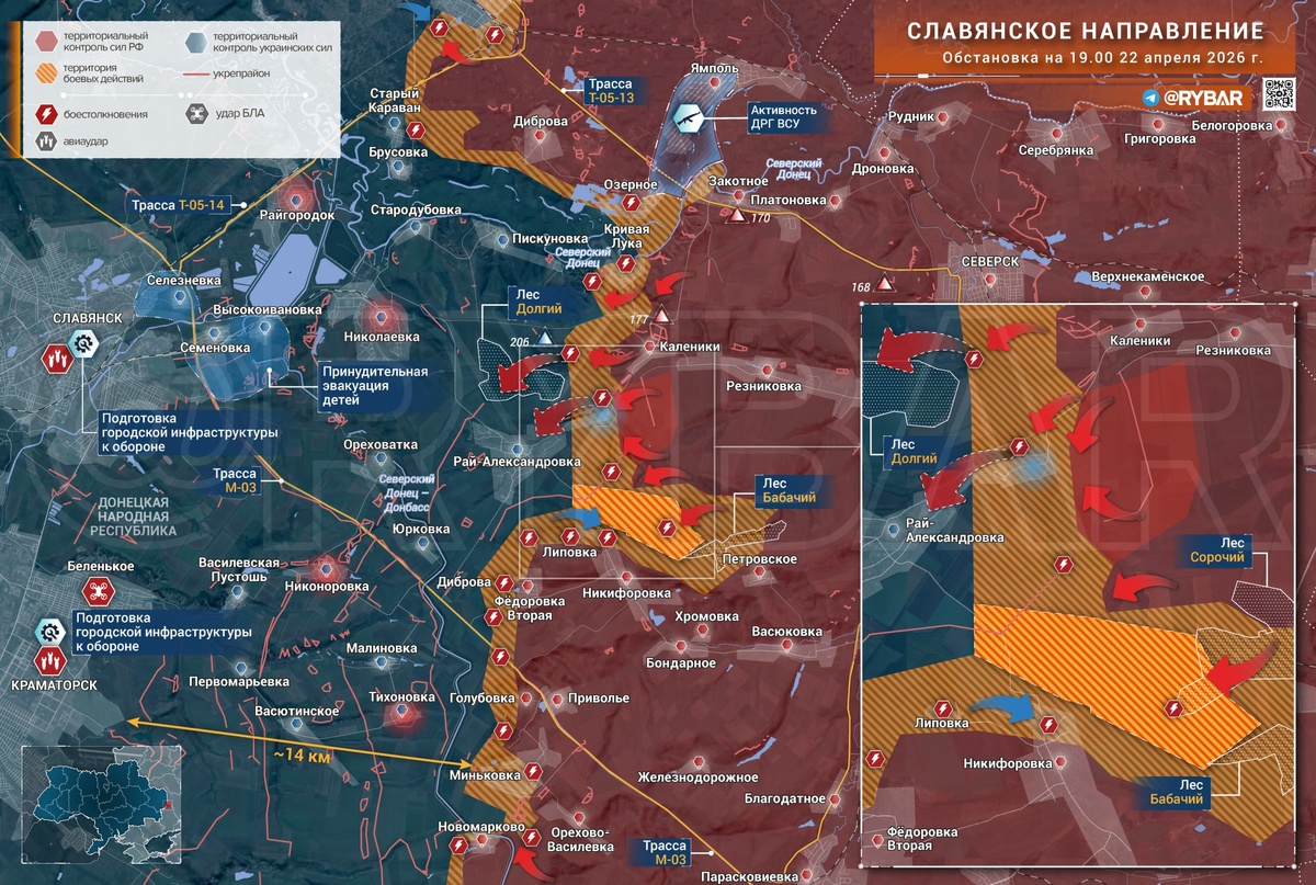 📝 На Славянском направлении российские войска сжимают «тиски» вокруг Рай-Александровки. Штурмовики ГВ «Юг» постепенно зачищают окрестности недавно освобожденных Калеников и развивают атаки в сторону леса Долгий, где недавно была подбита ББМ ВСУ. Занятие этого массива позволит российским войскам установить огневой контроль над путями снабжения противника со стороны Николаевки. ➡️В то же время присутствие российских подразделений отмечено уже на территории самой Рай-Александровки. Малые штурмовые группы постепенно просачиваются на окраины с восточной стороны, преодолев первую линию обороны, возведенную вокруг села. Но говорить о закреплении на занятых рубежах пока преждевременно: бойцы только недавно установили контроль над расположенными рядом полями и налаживают пути переброски подкреплений и снабжения. ➡️Судя по сложившейся конфигурации фронта, позиции ВСУ в «кармане» южнее находятся в «серой зоне». Противник не может организовать устойчивую оборону и вынужден отправлять резервы н