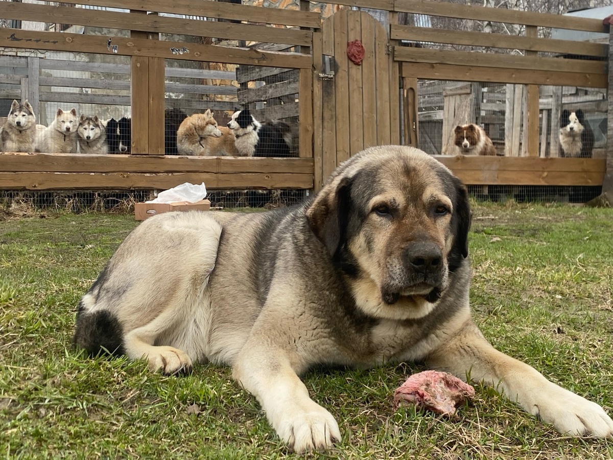 Несу я размораживать мясо собакам на завтра и вижу такую картину: Квас закапывает остатки своего ужина (то, что, видимо, не влезло, так как индюшиные головы ему по вкусу) – знаете куда? Прямо под вольер стаи! А все собаки сгрудились над ним (деревянный пол нашего вольера поднят на землей) и в напряжении, которое считывается по их телам даже на расстоянии, наблюдают за этим процессом. Ровно над закопками Кваса (а значит, ближе всего к ним по расстоянию) стоит Ирга. - Квас! Ну ты чего? – практически одновременно сказали мы с Ваней. Большой пес обернулся («Эх, засекли!») и несчастно-виновато поднял бровки. Рассекретили мы его хранилище, не ожидал он такого подвоха с нашей стороны. Ваня откопал его «клад» и вручил обратно в пасть. Квас вздохнул, взял индюшиные головы и улегся перед вольером – прятать в себя, но под завистливые взгляды других собак… А представьте, если бы мы так удачно и вовремя не проходили мимо? Уже вскоре после кормежки за это сокровище началась бы настоящая драка. Конеч